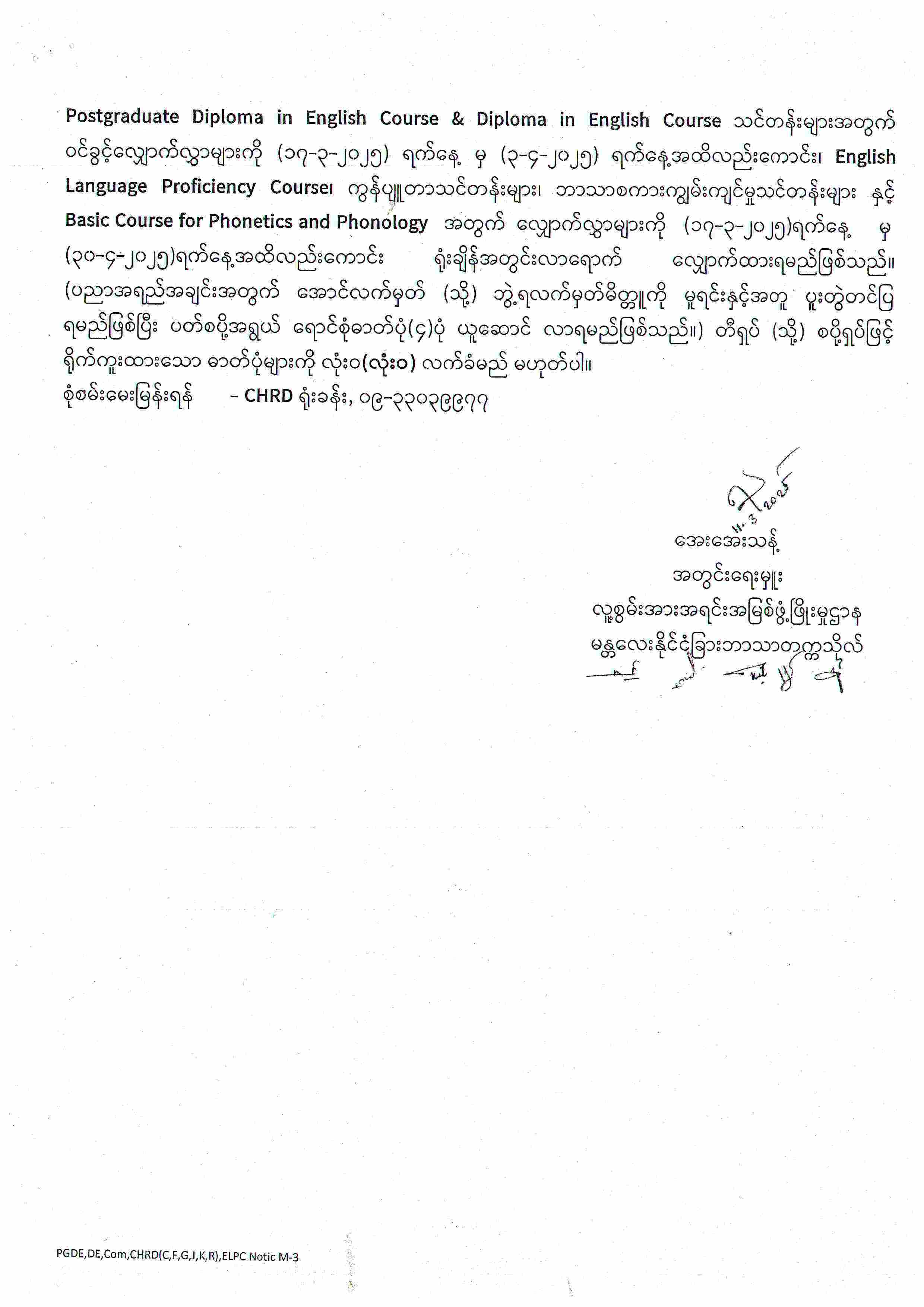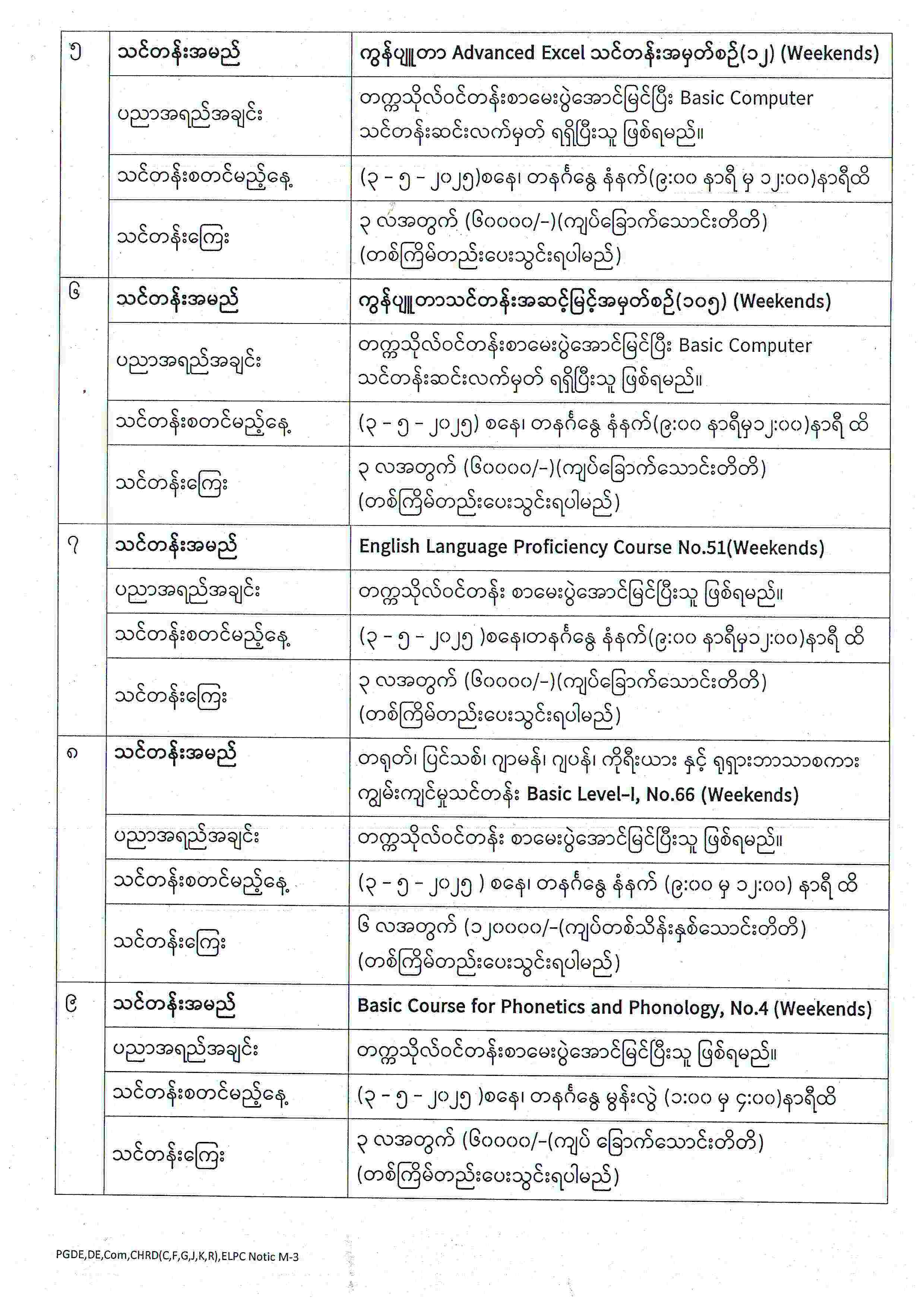 (လူ့စွမ်းအားအရင်းအမြစ်ဖွံ့ဖြိုးမှုဌာန) သင်တန်းလျှောက်လွှာများ ခေါ်ယူခြင်း Published: 17 March 2025 Category: Announcements