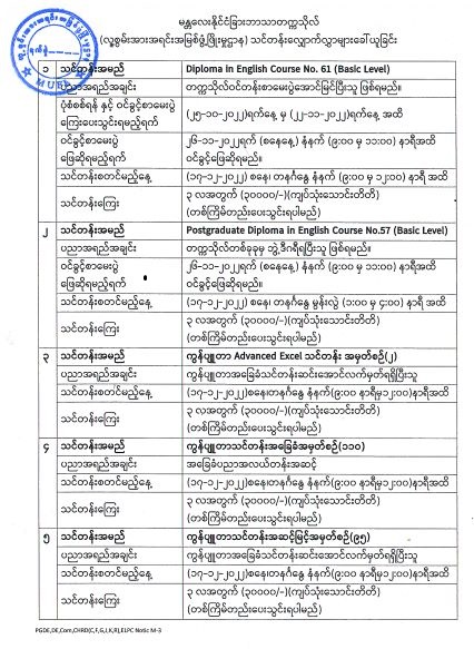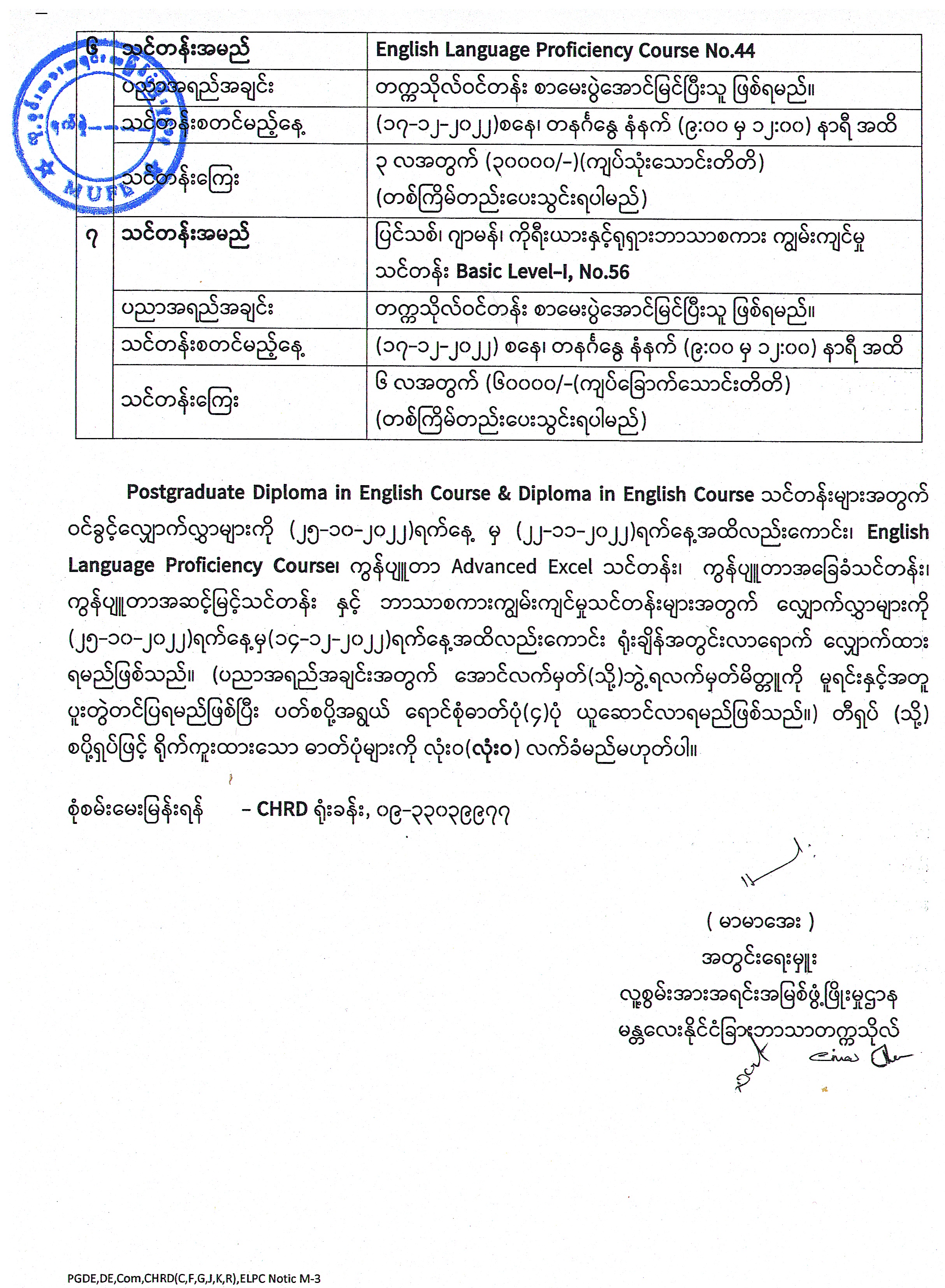 (လူ့စွမ်းအားအရင်းအမြစ်ဖွံ့ဖြိုးမှုဌာန)သင်တန်းလျှောက်လွှာများခေါ်ယူခြင်း Published: 19 October 2022 Written by MUFL admin Category: Announcements