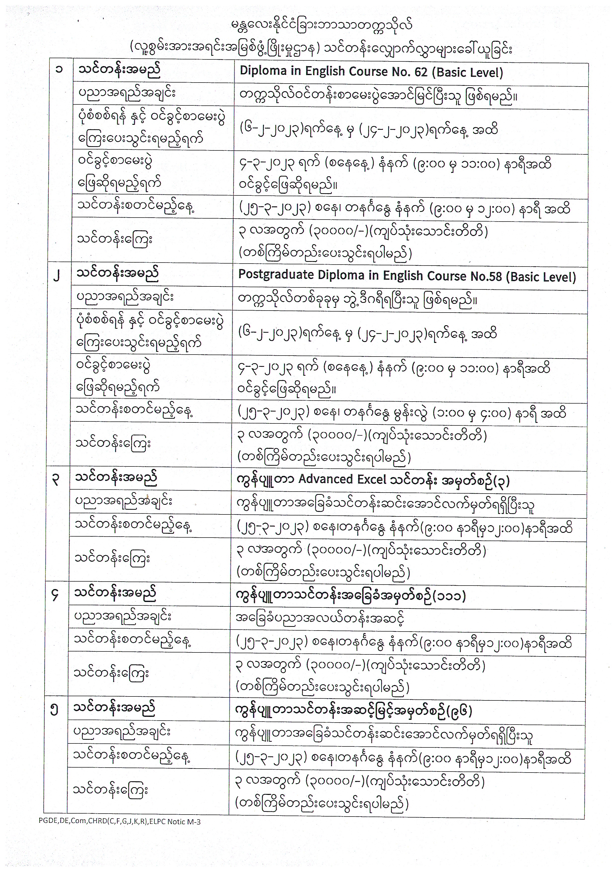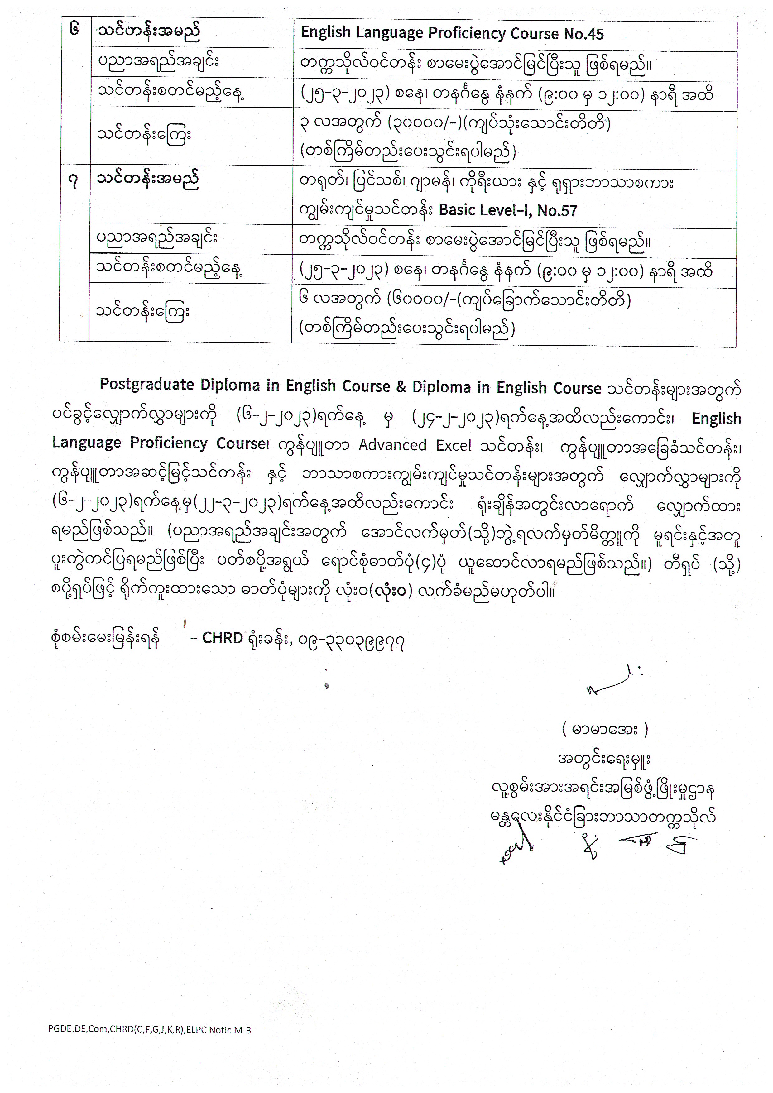 (လူ့စွမ်းအားအရင်းအမြစ်ဖွံ့ဖြိုးမှုဌာန)သင်တန်းလျှောက်လွှာများခေါ်ယူခြင်း Published: 02 February 2023 Written by MUFL admin Category: Announcements